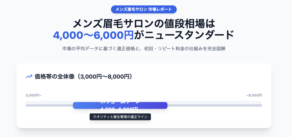 結論から申し上げますと、現在の日本におけるメンズ眉毛サロンの一般的な料金相場は、1回あたり4,000円〜6,000円程度です。