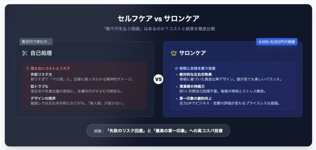 「自分でもできる眉毛の手入れに、わざわざ数千円を払う価値があるのか?」という根本的な疑問を持つ方もいるでしょう。