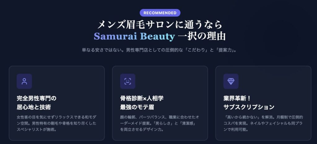 数あるサロンの中から、なぜ多くの男性がSamurai Beautyを選び、リピートし続けるのか。