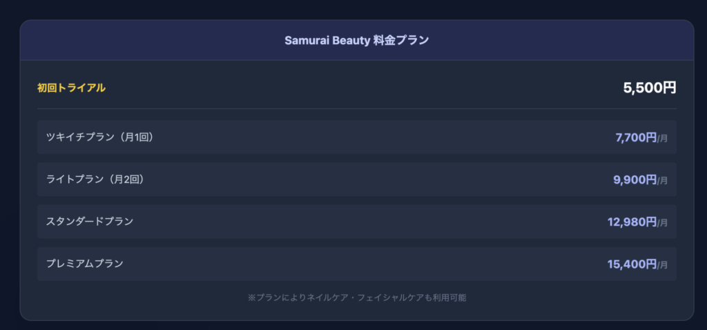 Samurai Beautyでは、この「継続することのメリット」を最大化したサブスクプランにより、通えば通うほどお得感を実感していただける設計になっています。