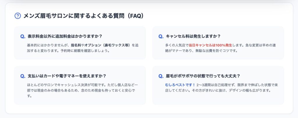 メンズ眉毛サロンに関するよくある質問(FAQ)