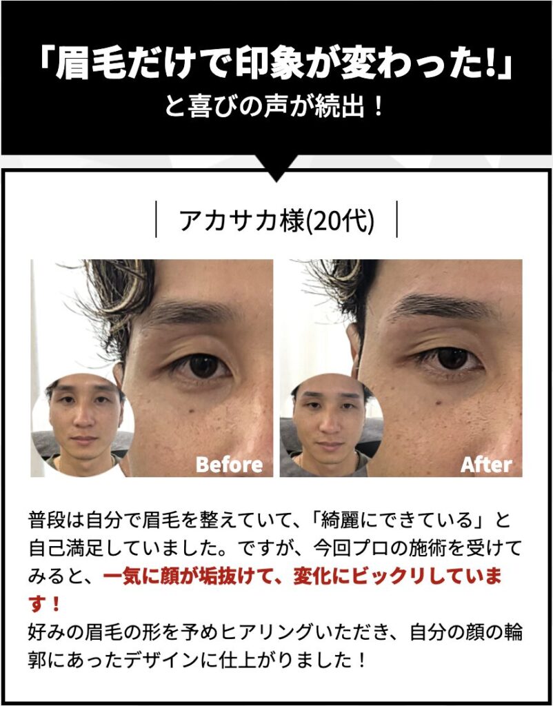 また、眉毛・ネイル・ピーリングなど豊富なメニューで女性から見た男性の「カッコイイ」に必要な要素を幅広くサポートしています。